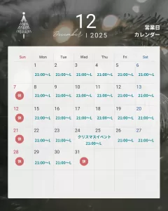 | 営業 | 21:00-LAST 月~土曜日(日曜日、祝日休み) |